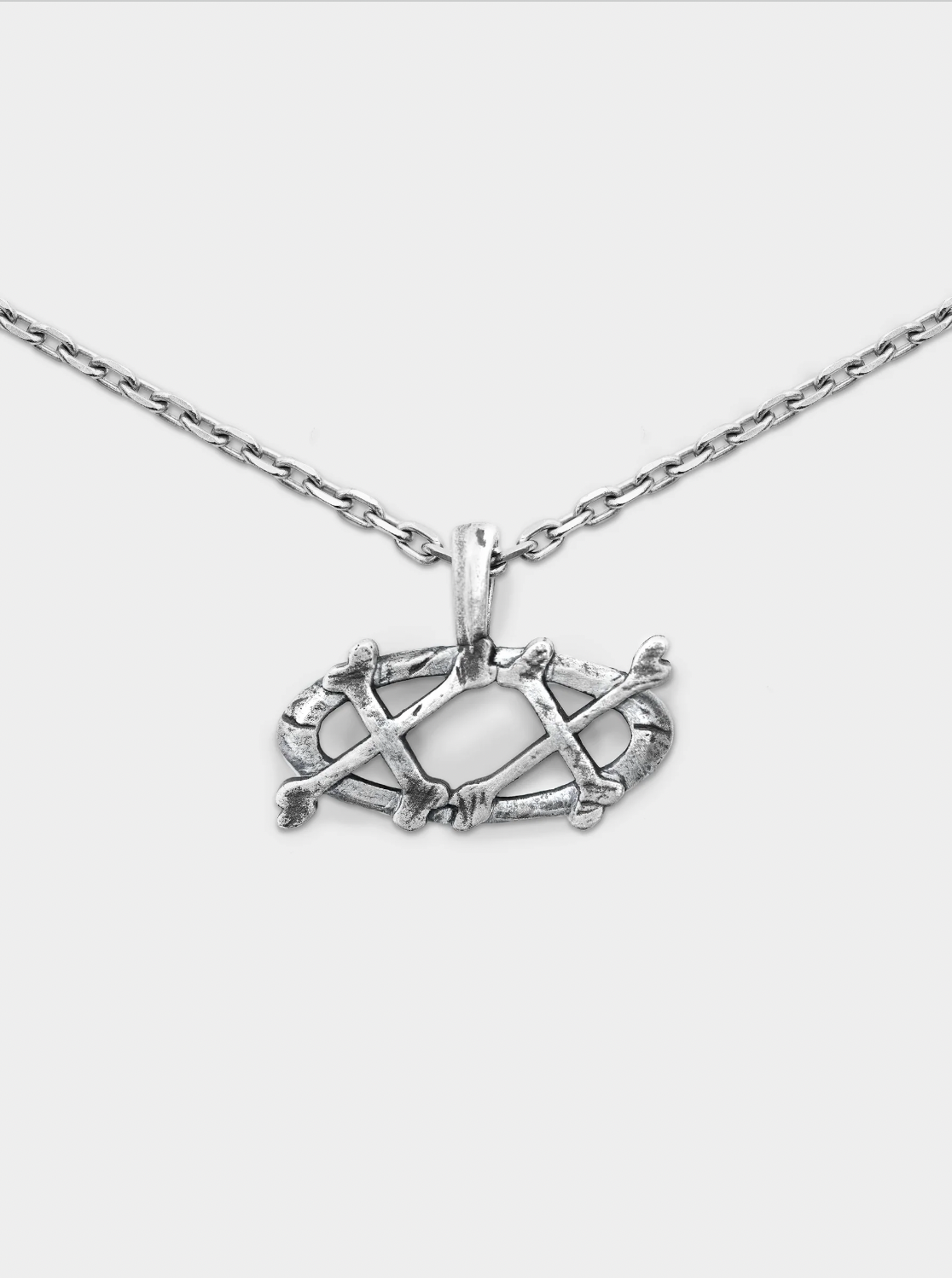 The ultimate Bones icon, now hanging from your neck. The Bones Classic Necklace features an oval frame slashed with crossed bones, cast in heavy oxidised 925 sterling silver. Hung on a durable chain.