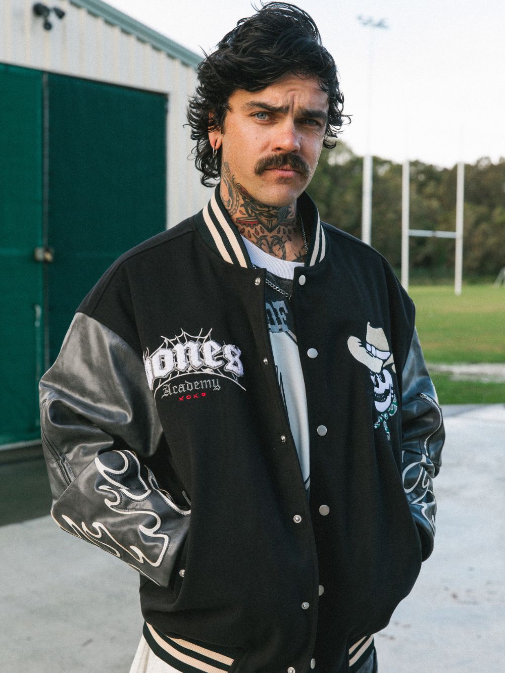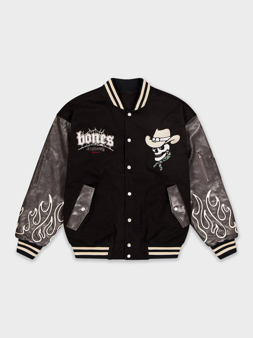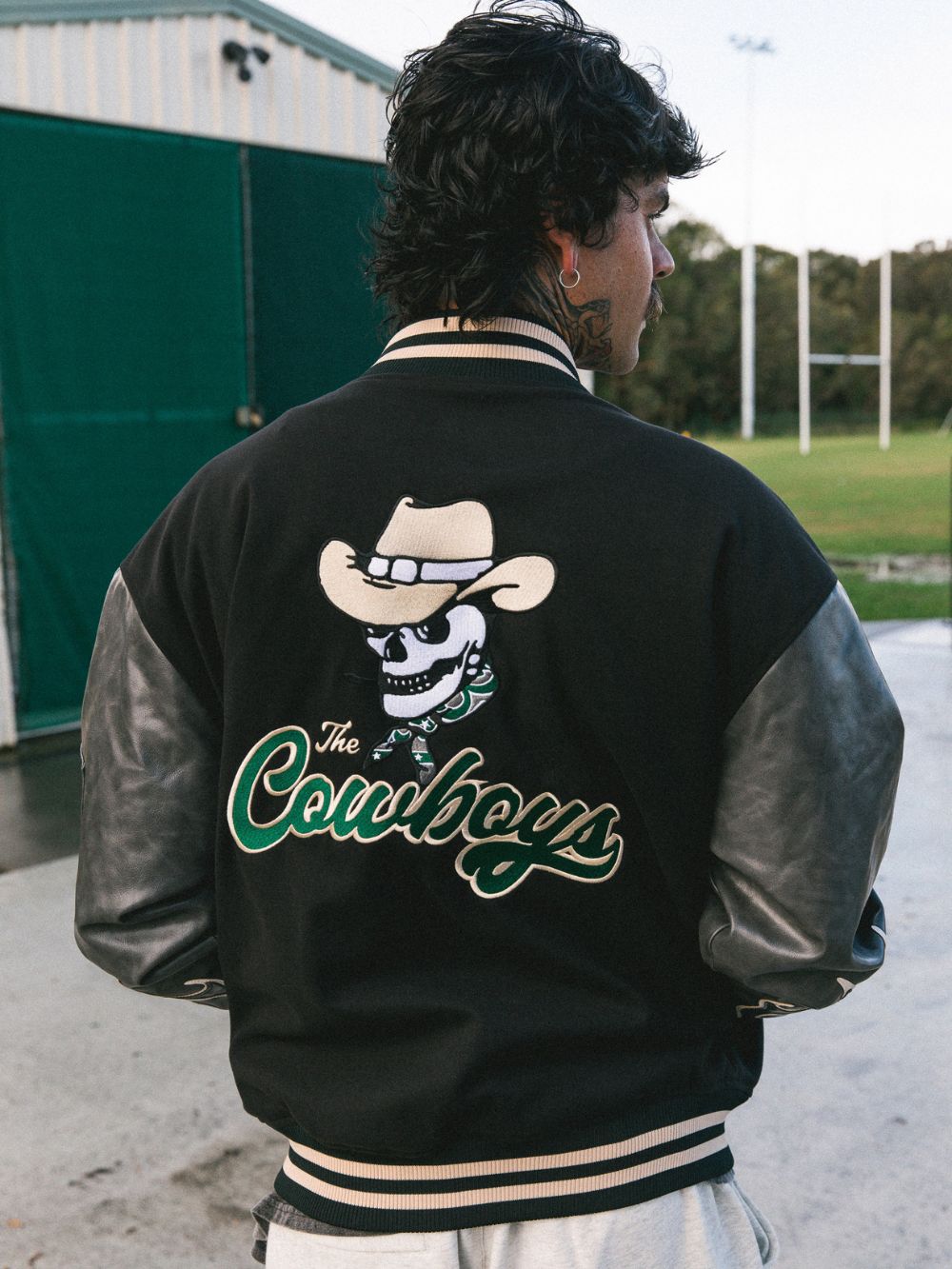 BILLY BONES CLUB COWBOYS VARSITY JACKET - BLACK/GREY