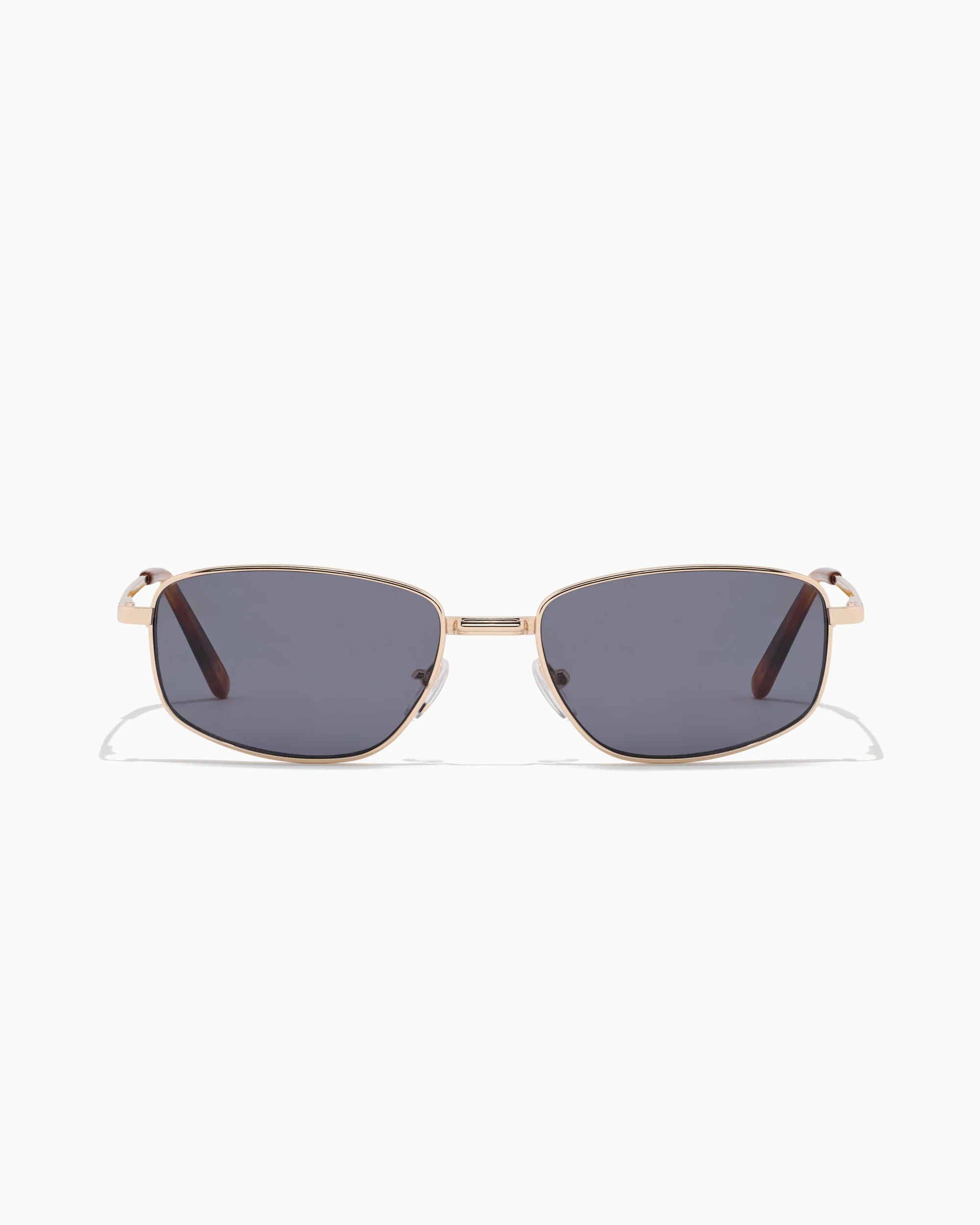 signature szade ; meet lee, an instant icon. this metal rectangular sunglass has the perfect proportions to flatter all faces and enhance any style/aesthetic. with a premium polished gold, lightweight frame, tortoiseshell acetate temples and black lenses, this early 2000s inspired sunglass will make you feel like you're the main character.