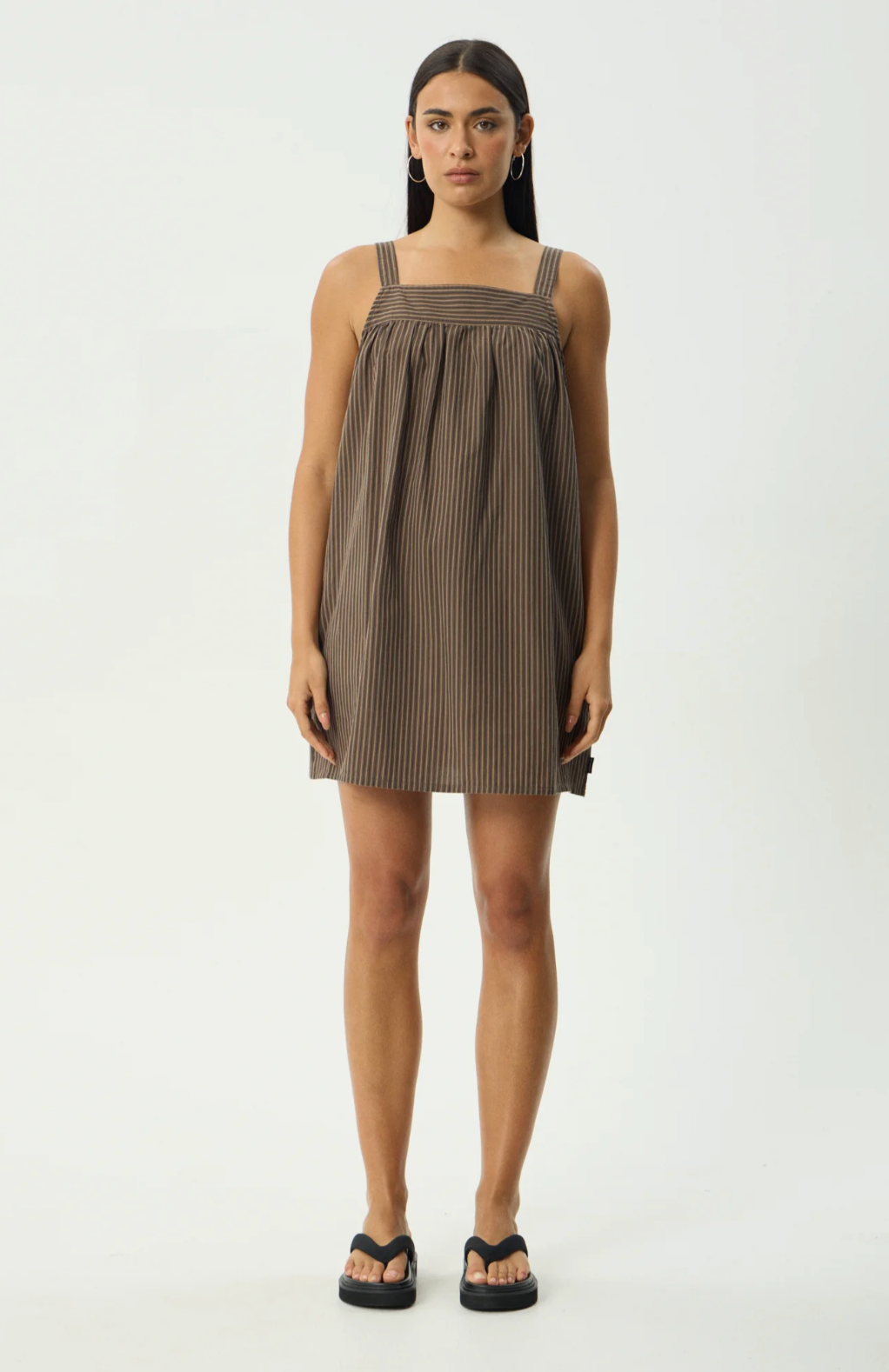 AFENDS CYRUS MINI DRESS - COFFEE STRIPE