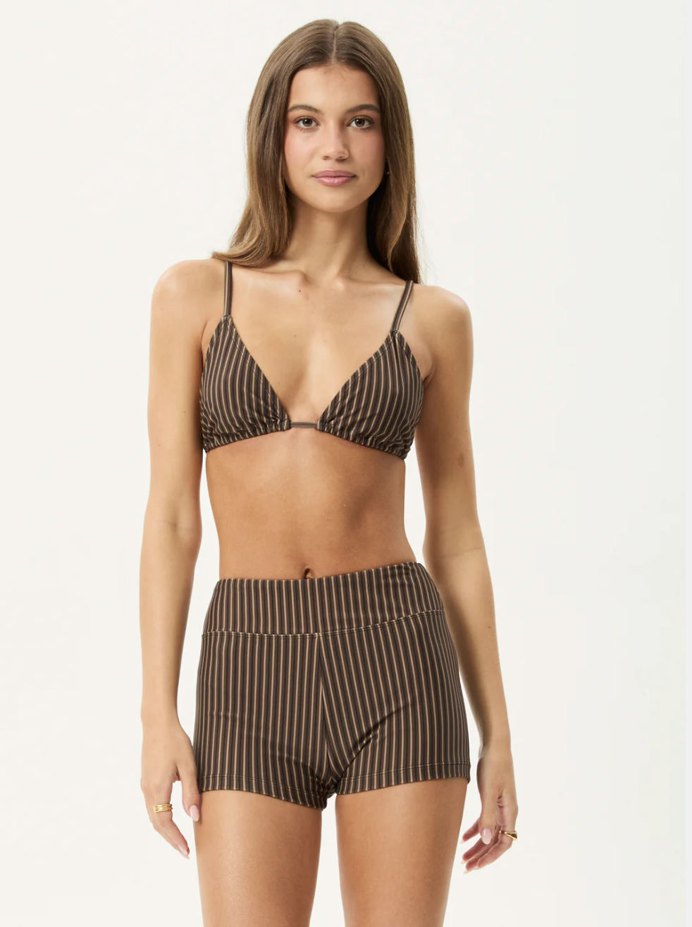 The ‘Cyrus’ Swim Short in Coffee Stripe offers a snug, comfortable fit with full coverage, ideal for both poolside or catching waves. Designed with a high rise waist to flatter the silhouette and provide extra support. Crafted from a recycled nylon blend, this piece is lightweight, quick drying, stretchy, and soft to the touch.