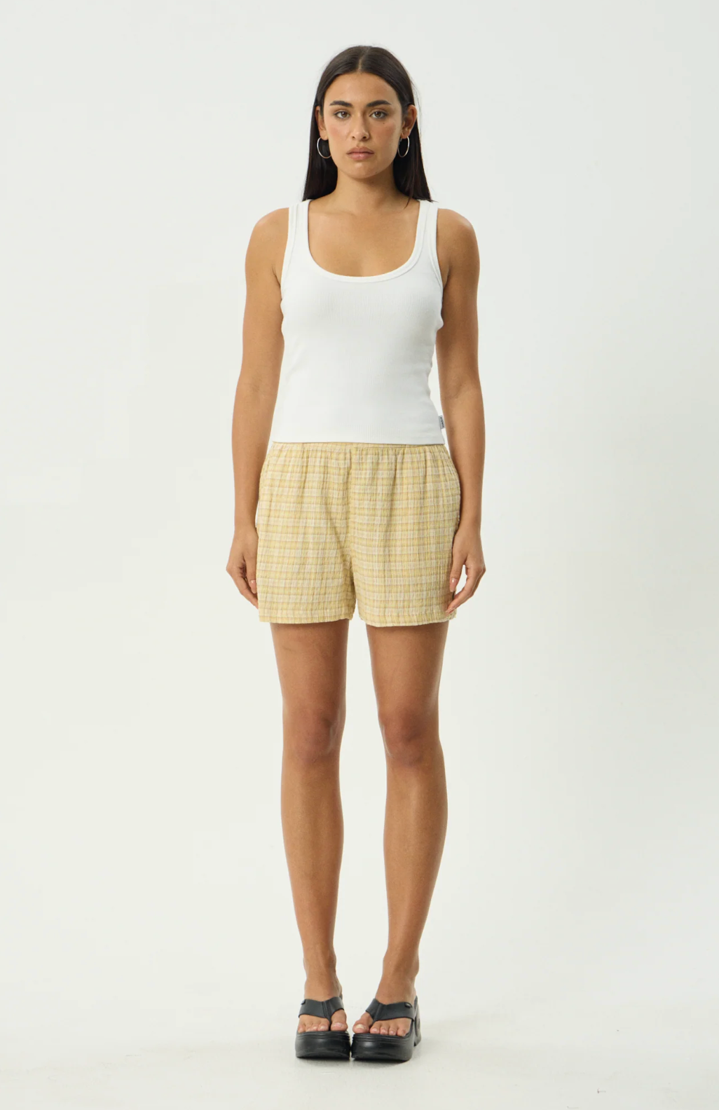 AFENDS WOMENS SUNDAY SEERSUCKER SHORT - LEMON CHECK