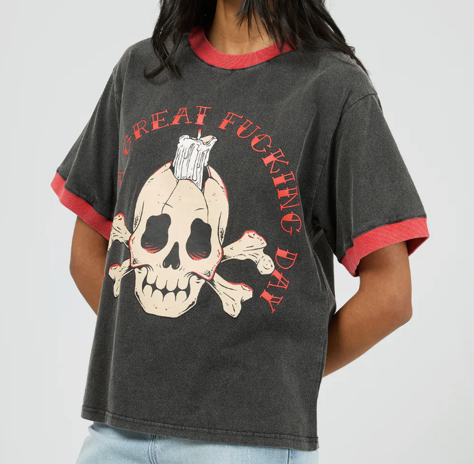 BILLY BONES CLUB HAVE A GR8 DAY RINGER TEE - BLACK/RED