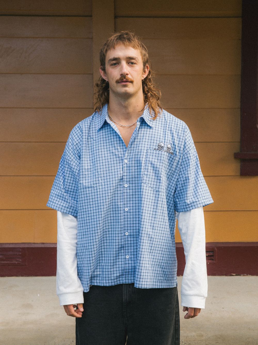 BILLY BONES CLUB BONES ACADEMY LAYERED SHIRT - BLUE CHECK