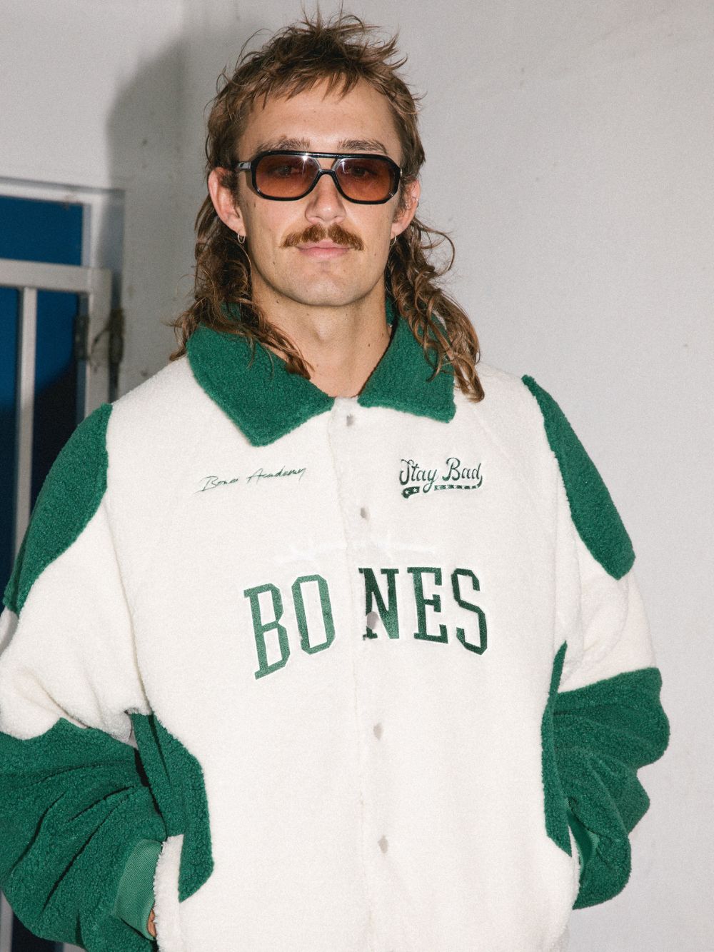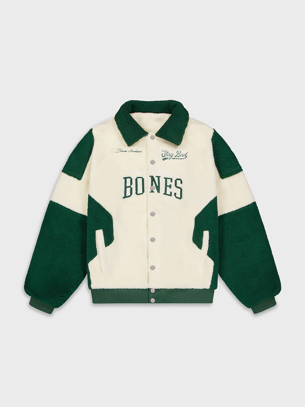 BILLY BONES CLUB BONES ACADEMY SHERPA JACKET - CREAM/GREEN