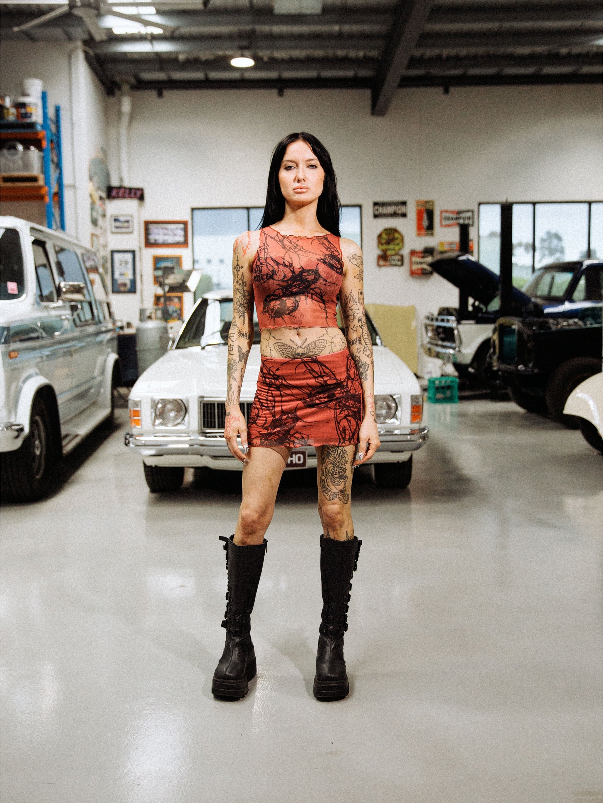 BILLY BONES CLUB SCORPION MESH SKIRT - RED