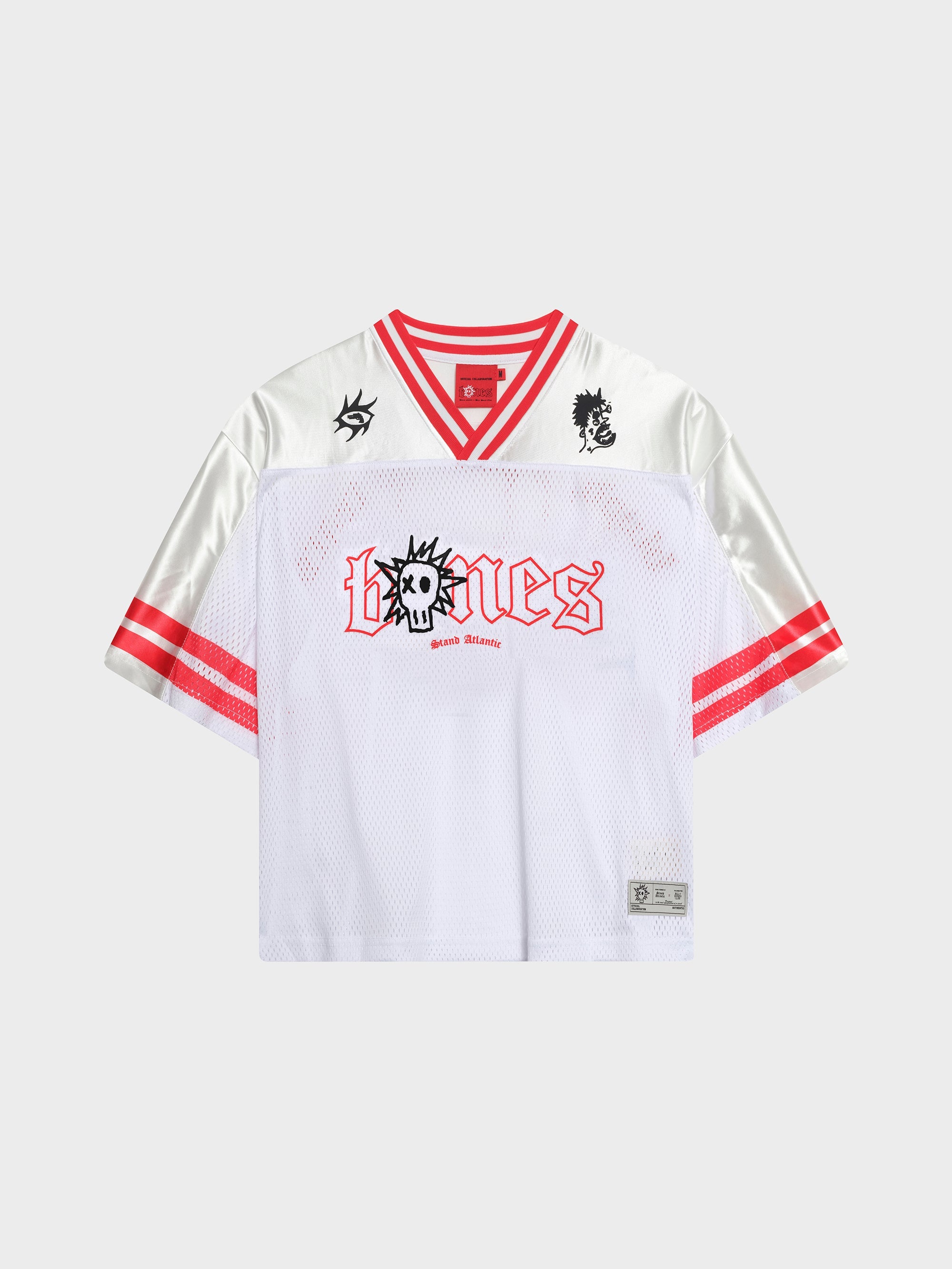 The official Jersey for the collab. It features red paneling and a combo of mesh and a soft fabric blend for an authentic Jersey feel. With Bon's designs from stand Atlantic placed on the front and more detailing on the back.